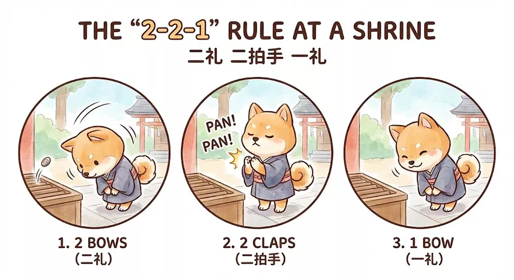 - Throw a coin into the offering box (5-yen coins are considered lucky!).